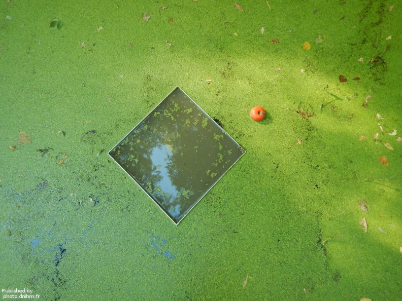 Quadrat après le prélèvement de la macrofaune, Lône de l'Ilon, secteur du Péage-de-Roussillon, août 2015, diverses Lemnaceae