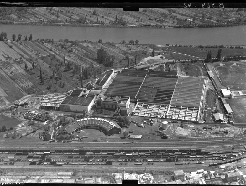 Vue aérienne de l'usine TASE (Textile Artificiel du Sud-Est) fondée par la famille Gillet, et implantée en rive droite du Rhône à La Voulte en 1916 (vue vers le sud-est)